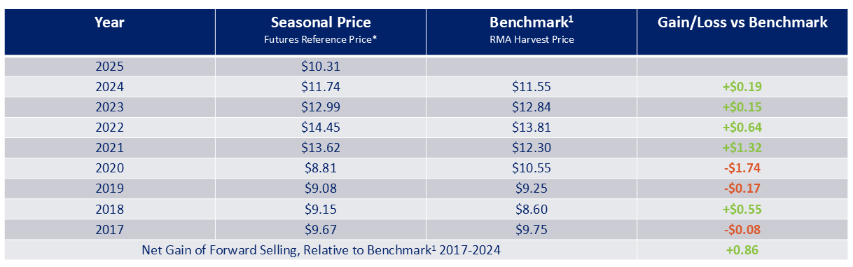 • You now have the option to enroll a portion of your 2027 crop to be priced during the 2026 pricing window. This allows you to take advantage of the historically favorable period, a year earlier.